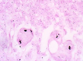 The sharply resolved black signal is readily distinguished from other stains: it has been combined with fast red K immunohistochemistry to provide a concomitant brightfield gene and protein assay.