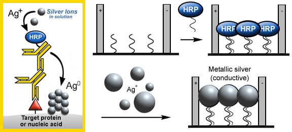 - Patented EnzMet™ technology uses HRP to deposit metallic silver with extraordinary selectivity.