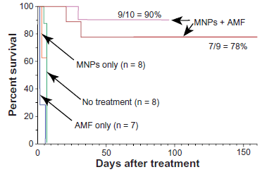 Survival greatly improved after IV magnetic nanoparticles (MNPs) and AMF.