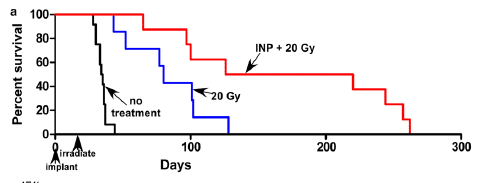 Radiotherapy + Gold Nanoparticles cured 50% of mice with brain tumors.